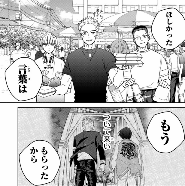 ウィンドブレイカー161話にて、「もういんすか?」と言う犬上に佐狐が返したセリフ。柊からの「ついて来い」という言葉を噛み締める佐狐。「ほしかった言葉はもうもらった」は良いセリフ。