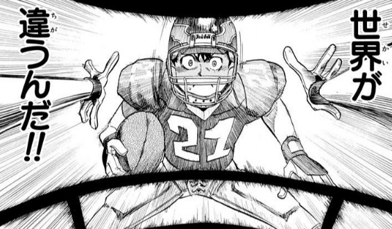 アイシールド2130話にて、葉柱ルイをぶち抜いていくセナのセリフ。進との対戦からルイをものともしないセナ。セナが確実に強くなってることがわかる描写。