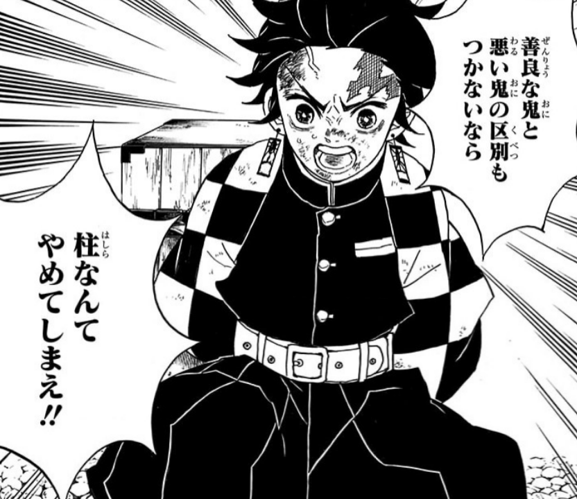 鬼滅の刃45話にて、禰豆子を始末しようとする実弥に炭治郎が放ったセリフ。柱にも自分の主張を曲げない炭治郎。炭治郎が誰相手でも自分を曲げない男であることがわかる描写。
