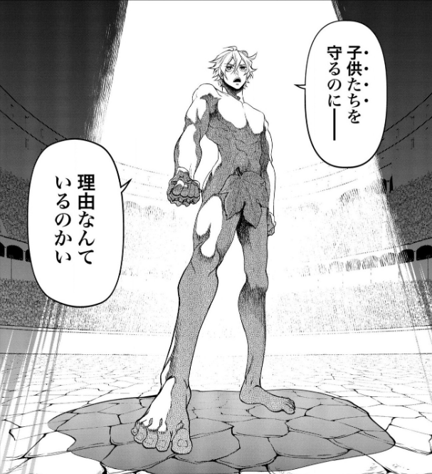 終末のワルキューレ10話にて、「おぬし本当のところなぜ神々との闘いに出てきた?」と言うゼウスにアダムが返したセリフ。理由なく人類を守ろうとしていくアダム。ジタンみたいなこと言いやがる。