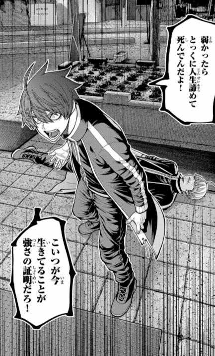 弱かったらとっくに人生諦めて死んでんだよ!こいつが今生きてることが強さの証明だろ!