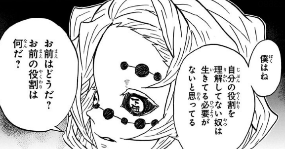 鬼滅の刃39話にて、対峙する炭治郎に累が放ったセリフ。累の価値観がよくわかるシーン。エグい価値観の押し付けw