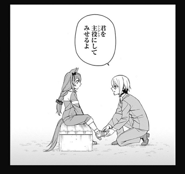 ウマ娘シンデレラグレイ46話にて、クリークの足を診た文乃のセリフ。「君をシンデレラにする」とかいう最高すぎるセリフ。「ガラスみたいな脚」からの「シンデレラ」はもう反則だ。