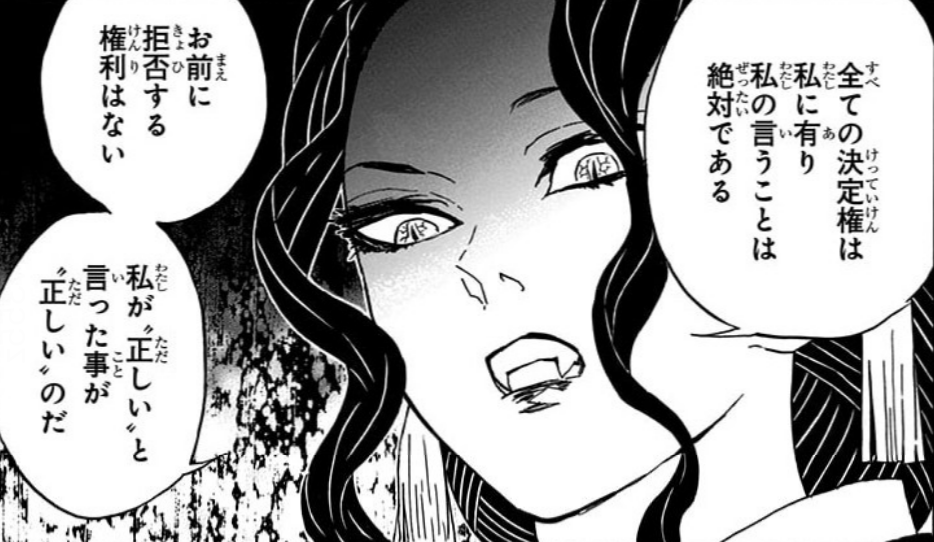 鬼滅の刃52話にて、「違います!!違います!!」と言う轆轤に無惨が放ったセリフ。あまりにもパワハラ。理不尽の塊でこれはもう災害。