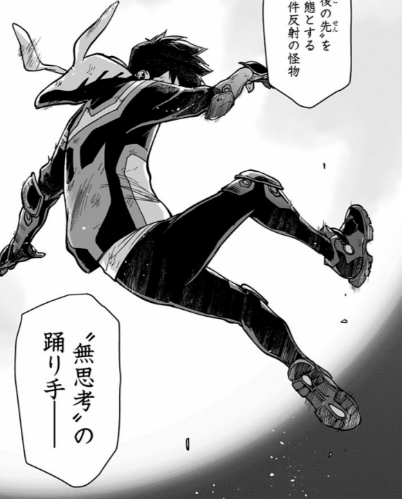 ヴィジランテ108話にて、コーイチの立ち回りを見たAFOのセリフ。コーイチの強みが明かされていくシーン。「無思考の踊り手」とかいうかっこよすぎる二つ名。