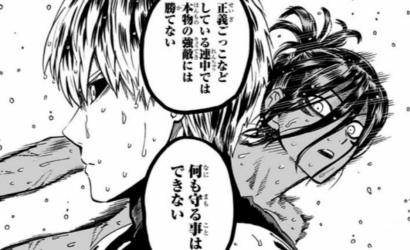 ワンパンマン番外編.3数字にて、サイタマに「周りを気にすんな」と言われた際のフブキのセリフ。フブキの迷いが晴れたシーン。フブキすこ。