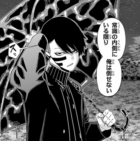 桃源暗鬼47話にて、桜介を倒した無陀野が放ったセリフ。「常識の範囲内では倒せない」と自分で言い放つ無陀野。無陀野の最強感がエグい。