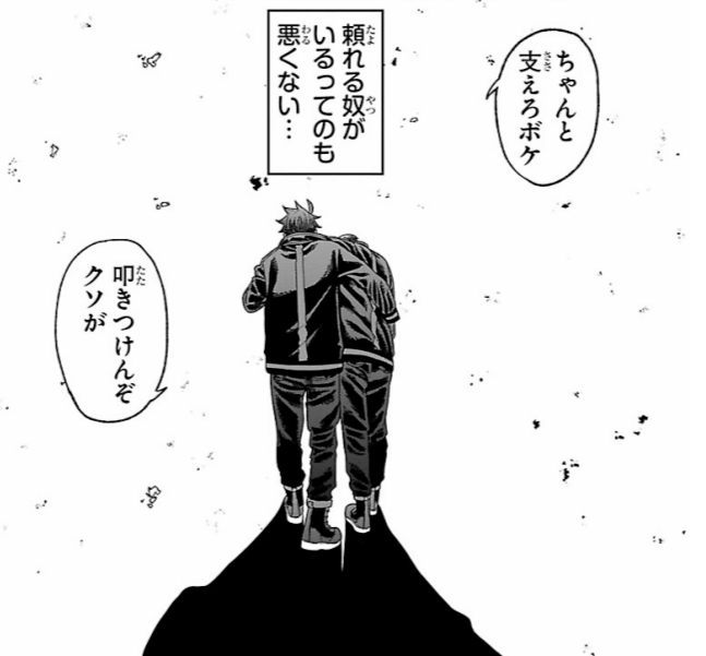 桃源暗鬼48話にて、四季に助けられた皇后崎のセリフ。皇后崎が仲間の存在をありがたがるシーン。皇后崎と四季の友情が育まれていることがわかる。