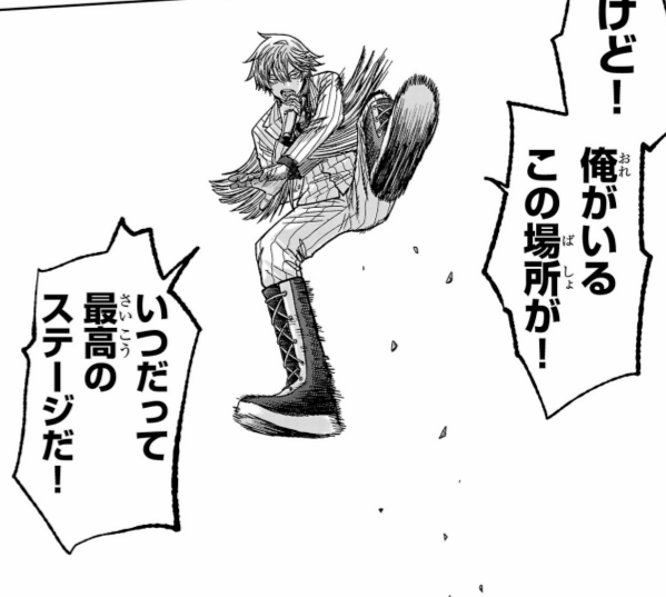 一般人が俺というアーティストを知ることはねぇ・・・。それでも俺は・・・音楽で救いてぇ・・・。音楽の神に見放されても・・・音楽そのものは俺を見捨てない!大好きな音楽が!いつだって俺に希望をくれる!ドームもアリーナも俺にはねぇ!