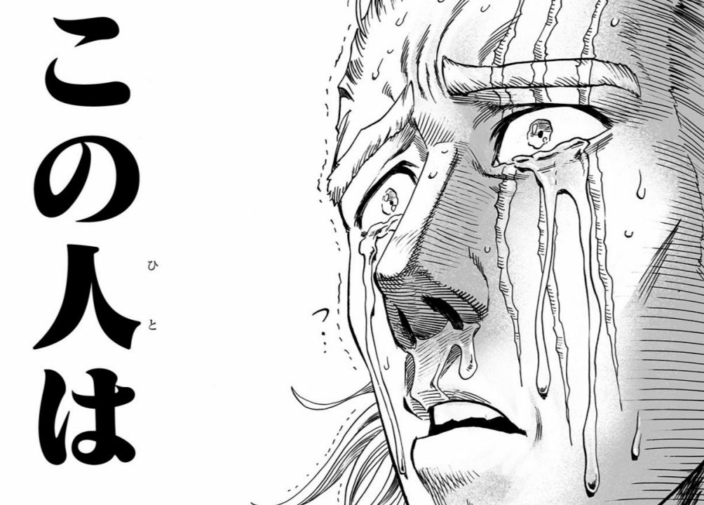 ワンパンマン39話にて、サイタマに助けられた際のキングのセリフ。過去に助けてもらった相手がサイタマと気づいた瞬間。神を見るような顔をしてやがる。