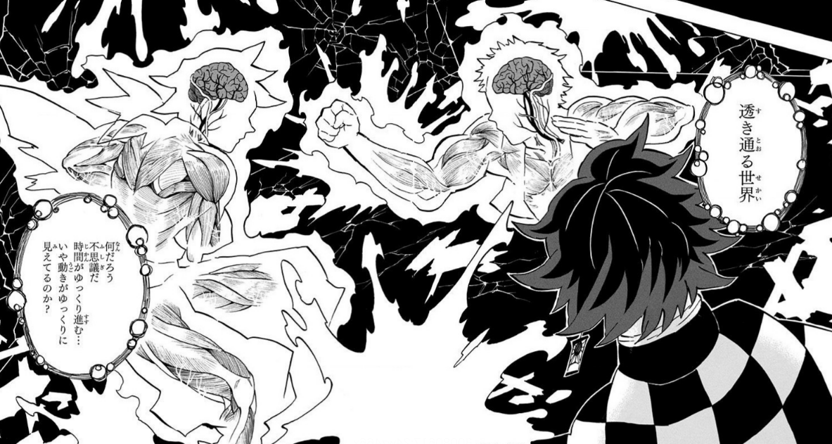 鬼滅の刃152話にて、透き通る世界に入った炭治郎のセリフ。ここにきて覚醒に至る炭治郎。少年漫画の王道であり、やはりこういうシーンは熱い。