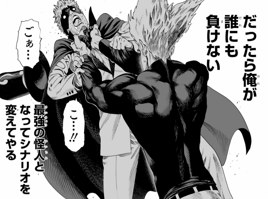 ワンパンマン41話にて、テジナーマンをのしていくガロウのセリフ。ガロウのオリジンが語られていくシーン。彼の正義を感じられる描写。