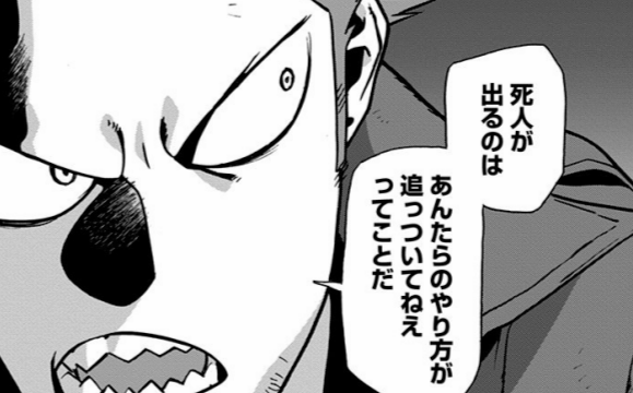 ヴィジランテ65話にて、「おまえ雄英まで出て賞金稼ぎになるつもりか」と言う担任に相澤が返したセリフ。相澤の目指すヒーロー像が明らかになるシーン。この相澤が最終的に雄英教師になるってのも熱いですね。