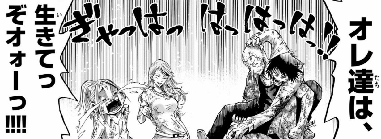 今際の国のアリス3話にて、げぇむを生き残ったアリスのセリフ。全力で生き残った喜びを爆発させる4人。四者四様の喜び方がまたいい。