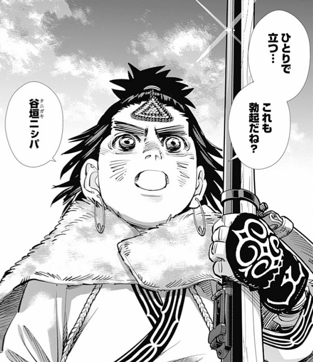 ひとりで立つ・・・これも勃起だね?谷垣ニシパゴールデンカムイ209話にて、「その銃を使うときはひとりで立つんだ」と言う谷垣にチカパシが返したセリフ。ひとりで立つ=勃起。ここまで感動...