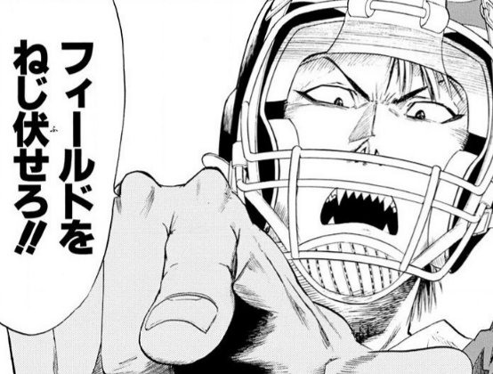 アイシールド216話にて、「栗田さんみたく敵をねじ伏せたりとかできればな」と言うセナにヒル魔が放ったセリフ。セナにやるべきことを気づかせていくヒル魔。「フィールドをねじ伏せろ」と言う言い方がヒル魔らしいですね。