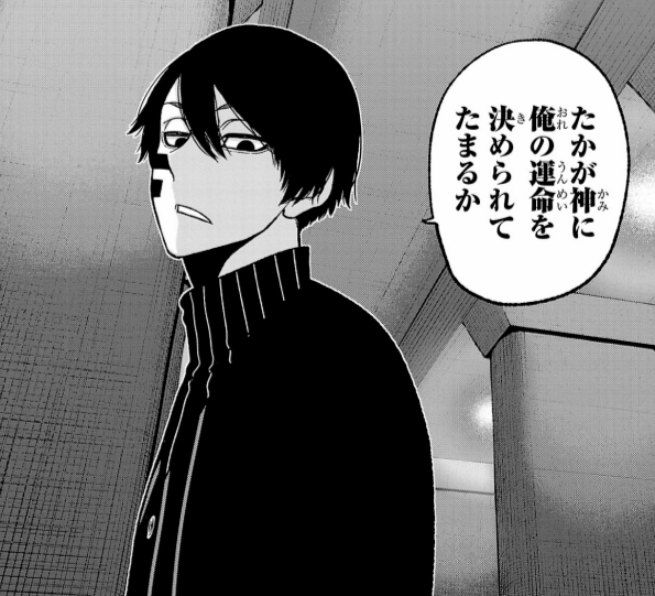 桃源暗鬼63話にて、「今回神は君が勝つ運命を選んだけど、次は僕が勝つ」と言う月詠に無陀野が返したセリフ。「たかが神」と言い放つ無陀野。神を信じないのも無陀野らしい。