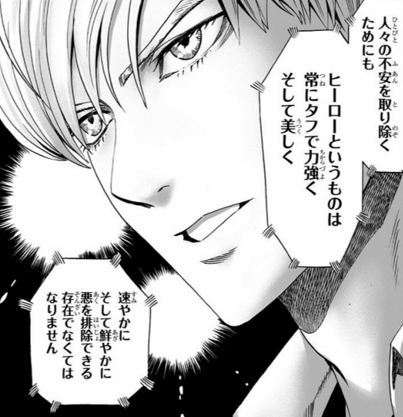 ワンパンマン25話にて、海人族襲来についての意見を求められた際のアマイマスクのセリフ。アマイマスクの思想が詰まったセリフ。彼は思想が強すぎるのだがw