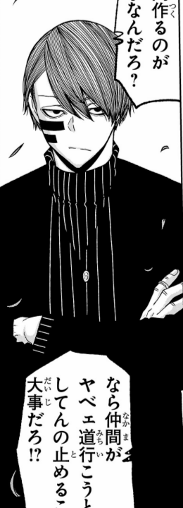 あいつら桃太郎を根絶するって言ってたよな?それって静かに暮らしてる桃太郎も一人残らず殺すってことだぞ!そんなの唾切がやったことと同じじゃねぇか!殺意を持って向かってくる桃と命のやりとりになるのはわかる!向こうも撃たれる覚悟があるから撃ってくるんだ!けどな!引き金に指すらかけてねぇ奴まで殺すのは間違ってんだろ!矢颪がそこを理解してるとは思えねぇ!お前らだってわかってなかったしな!矢颪から直接そこんとこ聞かなきゃ納得できねぇ。全部理解してそれでもあっち行くならいいよ。応援は1ミリもしねぇけど。ただ、このままハイさよならじゃもやもやすんだよ!無陀先!俺は追いかけるぞ!