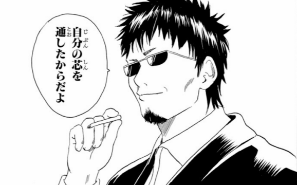 侍の刀はなァ、鞘におさめるもんじゃねェ、自分(てめー)の魂におさめるもんだ