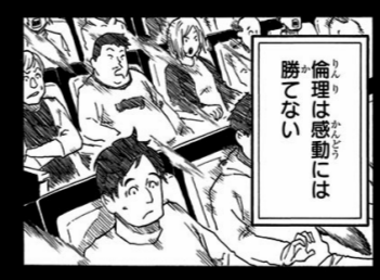 あかね囃12話にて、あかねの落語を見た尾崎のセリフ。阿良川一生の破門騒動の件に触れられるシーン。「倫理は感動には勝てない」は真理すぎる。