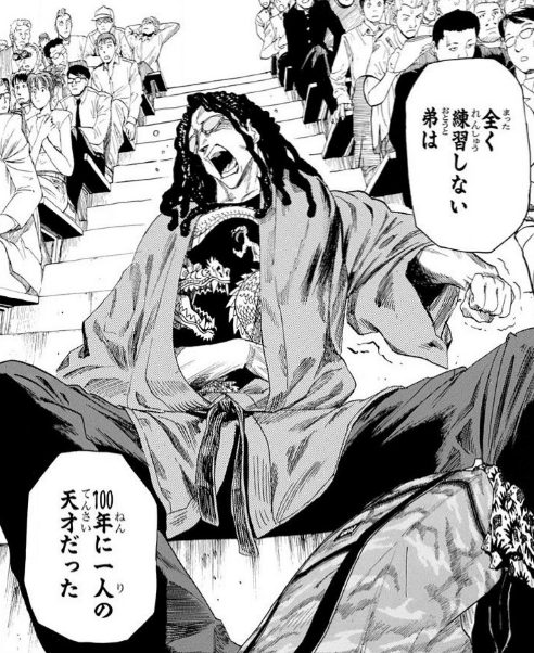 アイシールド2151話にて、阿含と雲水について語る熊袋のセリフ。阿含が100年に一人の天才であることがわかるシーン。この漫画を象徴とする描写ですね。