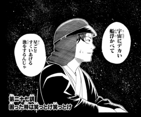 宇宙にデカい船浮かべて星ごとすくいあげる漁をするんじゃ決めた。わしゃ宙にいくぜよ。このまま地べたはいずり回って天人と戦ったところで先は見えちょる。わしらがこうしちょる間にも天人はじゃんじゃん...