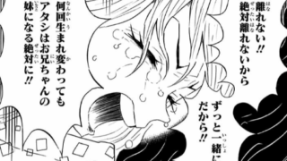 離れない!!絶対離れないから、ずっと一緒にいるんだから!!何回生まれ変わってもアタシはお兄ちゃんの妹になる、絶対に!!