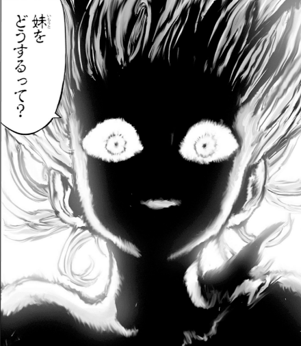 ワンパンマン96話にて、「貴様等姉妹の目玉をくり抜いて」と言うジャガンにタツマキが返したセリフ。妹のことと...