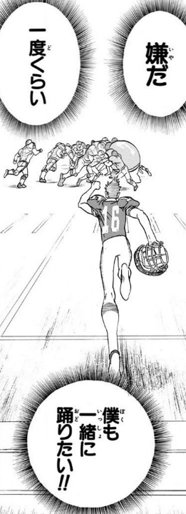 アイシールド2177話にて、デス・マーチ参加を決める雪光のセリフ。雪光が本気でアメフトに取り組んでることがわかるシーン。そして、ガチでレギュラーを取りにいってることがわかる。