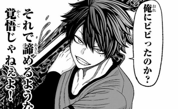 桃源暗鬼28話にて、蓬を見た矢颪のセリフ。矢颪が能力を使っていくシーン。「今日の怒りは何を生む?」というオリジ...