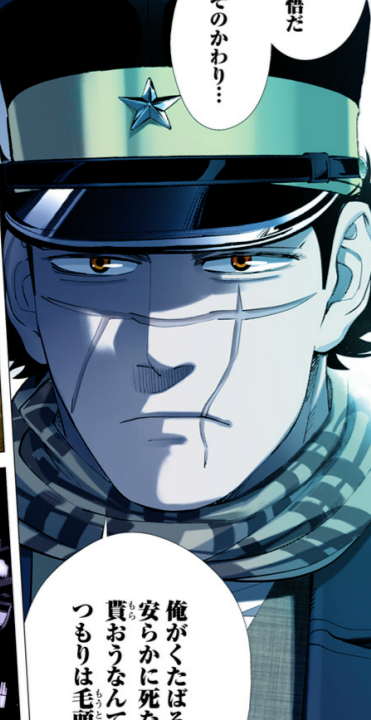 ゴールデンカムイ5話にて、「どれだけ危険な博打に手を出しているのか分かっておらんのだ」と言う尾形に杉元が返したセリフ。惚れた女のために戦う杉元。これは主人公。