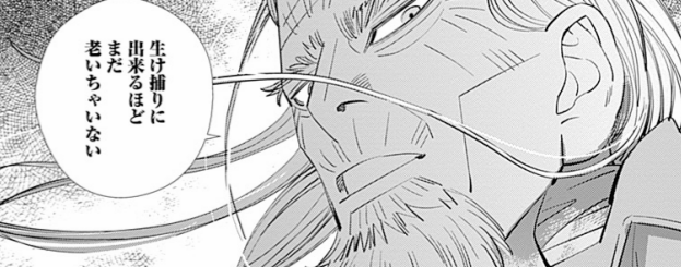 ゴールデンカムイ58話にて、対峙する馬吉一味に永倉が放ったセリフ。永倉の本気モード。これは新撰組最強の男と思える鬼気迫る姿。