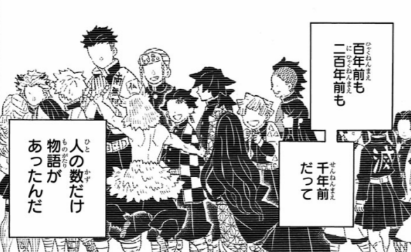 鬼滅の刃156話にて、死にゆく猗窩座が恋雪に伝えたセリフ。最後に恋雪への想いを思い出していく猗窩座。なんて感動的なラストか。