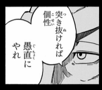 あかね囃10話にて、「・・・お言葉ですが真面目なだけでは笑いには」と言う享二に志ぐまが返したセリフ。「真面目も過ぎれば個性になる」と伝える志ぐま。「どんなことも極めれば個性になる」と解釈できる言葉。