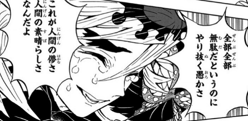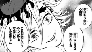 鬼滅の刃163話にて、「どうしましたか?」と言うしのぶに童磨が返したセリフ。最後にしのぶに馴れ馴れしさを見せていく童磨。童磨らしい最期で良い。