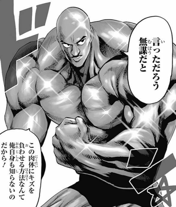 ワンパンマン112話にて、蟲神を粉砕したクロビカリが放ったセリフ。圧倒的フィジカルを披露するクロビカリ。S級エグすぎだろ。