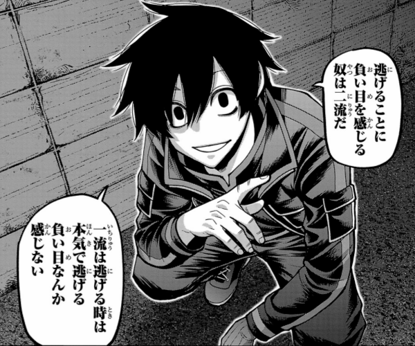 桃源暗鬼169話にて、「置いて逃げろって言うのかよ!?」と言う矢颪に淀川が返したセリフ。逃げることへの考え方を伝えていく淀川。淀川はいつも大事なことを教えてくれる。