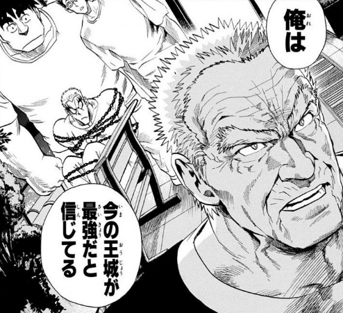 アイシールド2192話にて、「確かに黄金世代が抜けて王城は弱くなったかもしれないけど」と言う高見にショーグンが返したセリフ。今の王城を最強と信じるショーグン。監督の言葉として最高すぎるだろ。