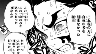 これ程の刀に自分の名を刻まなかった理由、この一文字・・・この一念のみを込めて打った刀なんだ、ただ一つこれだけを目的として打った刀鬼滅の刃117話にて、ひたすら刀を研ぎ続ける鋼鐵塚のセリフ。玉壺の襲撃を意に介さず刀を研ぎ続ける鋼鐵塚。あのイカれた鋼鐵塚さんが最高にか...