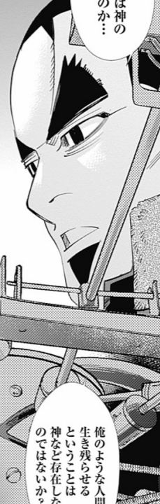 ゴールデンカムイ176話にて、「飲まなければ確実に死ぬなら一か八かに賭けて飲むしかない」と言う土方に関谷が返したセリフ。最後の最後に神を信じることができた関谷。こいつもまた変態や。