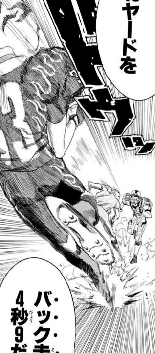 アイシールド2151話にて、一休について語るヒル魔のセリフ。「バック走で40ヤード4秒9」という規格外のスペック。最強チームにふさわしい能力である。