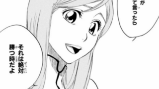 BLEACH279話にて、「こわい人はみんな勝つ勝つって言うっス」と言うネルに織姫が返したセリフ。一護が「絶対勝つ」と口にした理由を語る織姫。さすが一護への理解が高い。